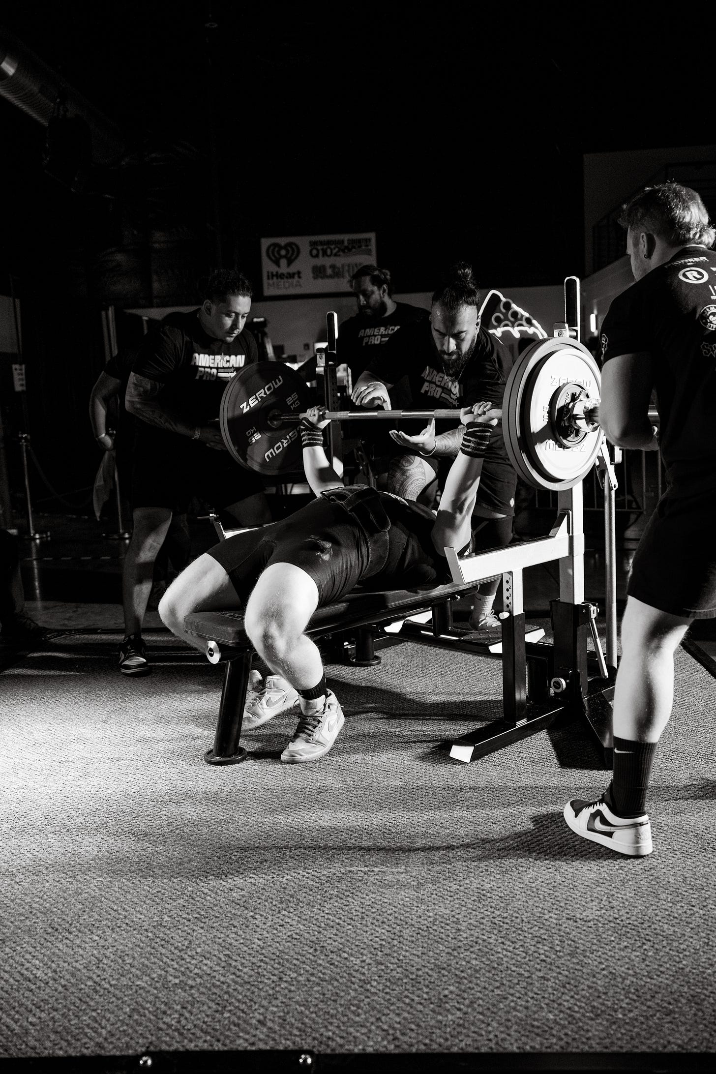 2- With the inability to use our legs for leverage and our ability to arch decreasing…This leads to a greater range of motion the bar has to travel at the bottom of the press, which puts a lot of tension on the pecs.